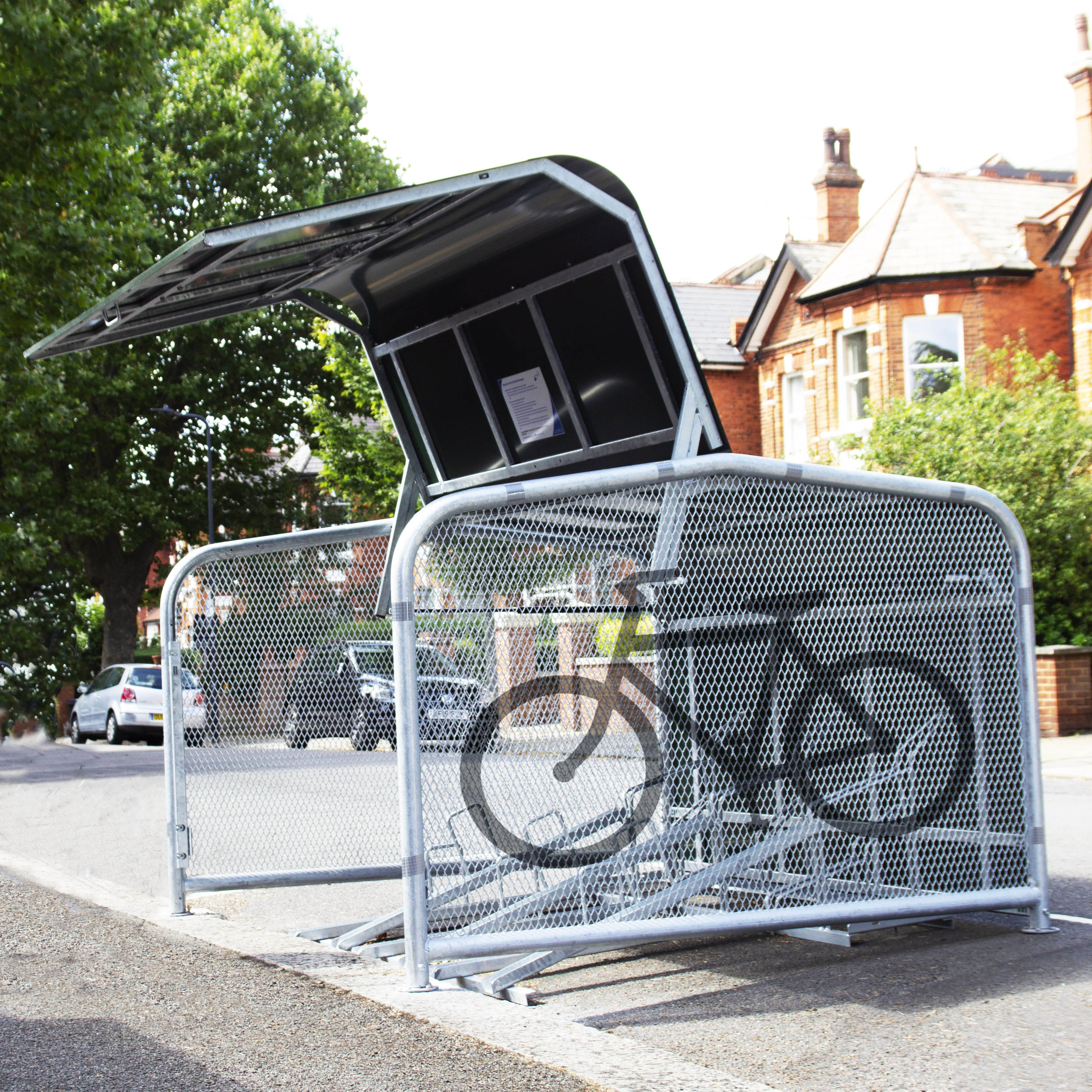 The FalcoPod bike hangar is a robust on street cycle parking solution to meet the needs of cyclists who don't have access to private cycle parking facilities. The FalcoHub is a large shared cycle parking facility usually located in areas where mass bike parking is required such as town centres or stations. Since other users also have access to your facility, always secure your bike with at least two, high-security locks.